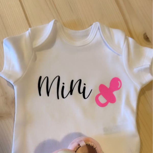Dieser süße Baby-Body kann mit dem Namen oder einem besonderen Motiv personalisiert werden.