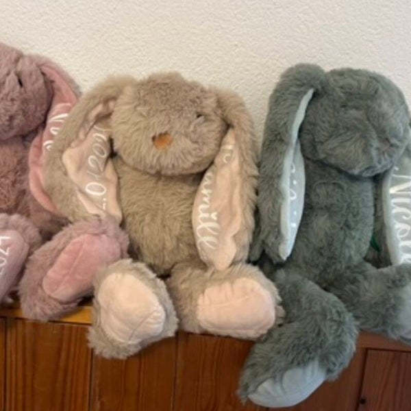 Kuscheliges Häschen mit Personalisierung – in 4 Farben verfügbar.