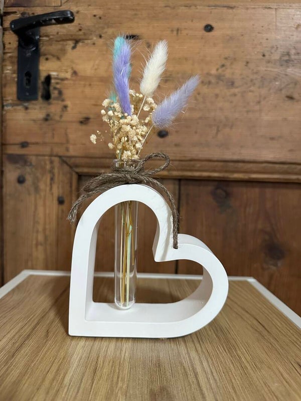Realizzato in gesso ceramico, ogni pezzo è unico. Le immagini sono a solo scopo illustrativo. Riceverai il cuore accompagnato dalla provetta; su richiesta, è possibile aggiungere anche i bastoncini per diffusore o fiori secchi.
