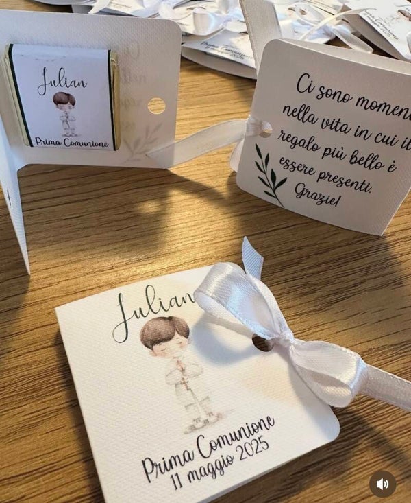 Cioccolatini personalizzati con libricino segnaposto.